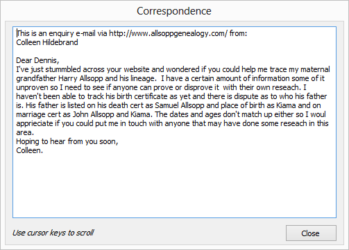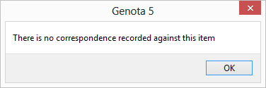 If no correspondence has been recorded against the selected record a notification dialog as shown below will display