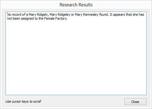 If no research results are available for the selected record a notification dialog as shown below will display